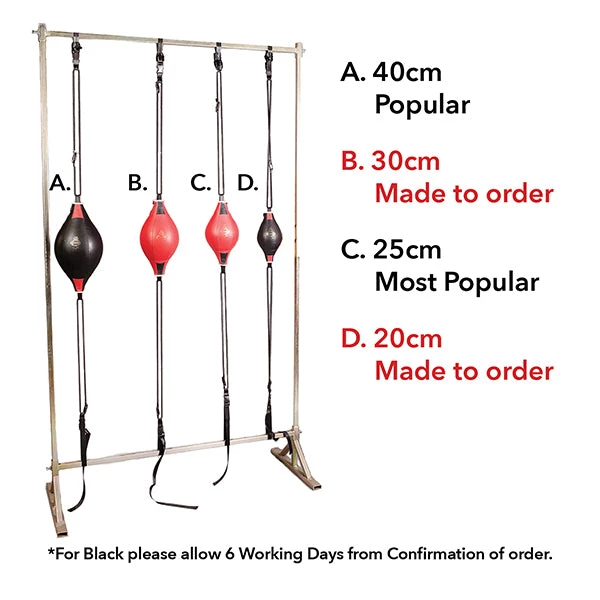 Sizes range from our most popular head size 25cm ball for quick sharp movement, to the larger 40cm ball which is ideal size to learn the skills of shadow boxing.