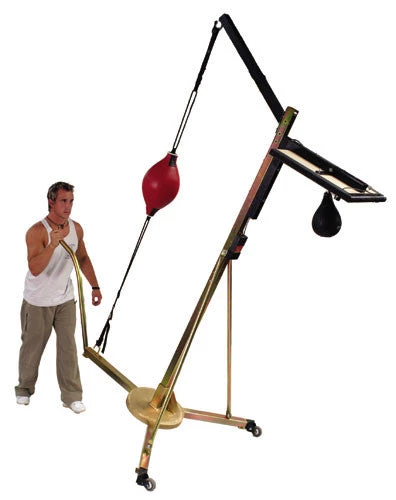 An original Jim Bradley design, this heavy duty fully portable 2 Way Station with unique weighted base has a speedball and floor/ceiling station.