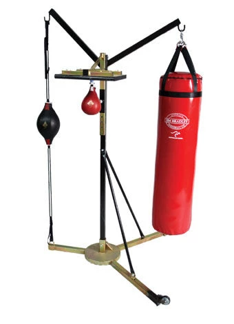 Another unique and original Jim Bradley design this heavy duty, fully portable 3 Way Station with unique weighted base facilitates a Speedball, Punching Bag and Floor/Ceiling Ball.