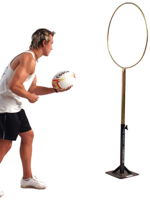 Forget the hospital hand pass. Player each side at various distances. Keeps handball flat and direct. Height adjustable.